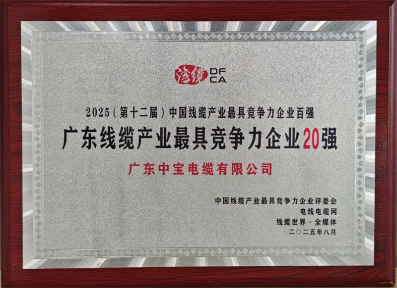 憑借在市場(chǎng)競爭中的穩健表現、在技術研發中的(de)持續投入以及在品牌建設中的卓越成就,廣(guǎng)東中(zhōng)寶電纜有限公司在眾多參評企業中脫穎而出,榮膺“2025廣東線(xiàn)纜產業最具競爭(zhēng)力企(qǐ)業20強”榮譽,是行業對红杏视频電(diàn)纜在生產製造、市場拓展、服(fú)務質量等綜合實力的高度認可。